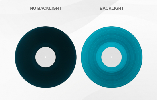 Vinylen är transparent blå- syns vid bakgrundljus
