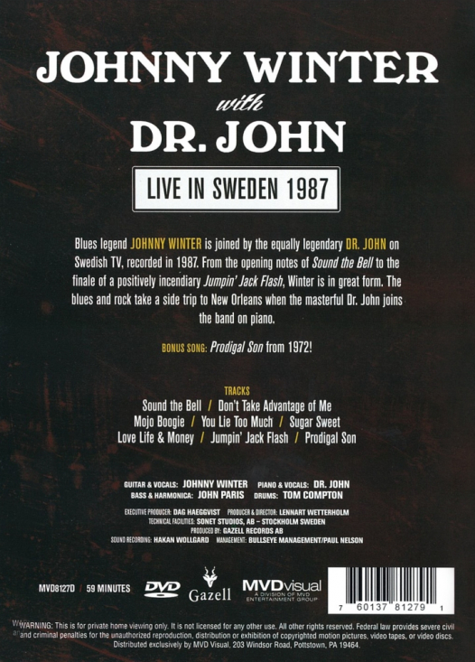 Johnny Winter With Dr. John - Live In Sweden 1987 (DVD) i gruppen Labels / Gazell hos Bengans Skivbutik AB (5664711)
